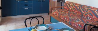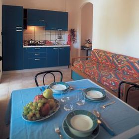 Zadbane, nowocześnie urządzone apartamenty z aneksem kuchennym, posadzką z terakoty, prysznicem i WC i balkonem lub tarasem. 2 razy w tygodniu sprzątanie (bez aneksu kuchennego) i zmiana bielizny pościelowej, 3 razy w tygodniu zmiana ręczników. AEL: 2-pokojowy apartament o pow. ok. 50 m2 dla maks. 2-4 osób. Sypialnia z łóżkiem 2-osobowym, pokój dzienny z 2-osobowym rozkładanym tapczanem, balkon lub taras. AEG: 3-pokojowy apartament o pow. ok. 50 m2 dla maks. 2-4 osób, usytuowany na piętrze. Sypialnia z łóżkiem 2-osobowym, mała sypialnia z 2 łóżkami, kuchnia-pokój dzienny i duży balkon.
