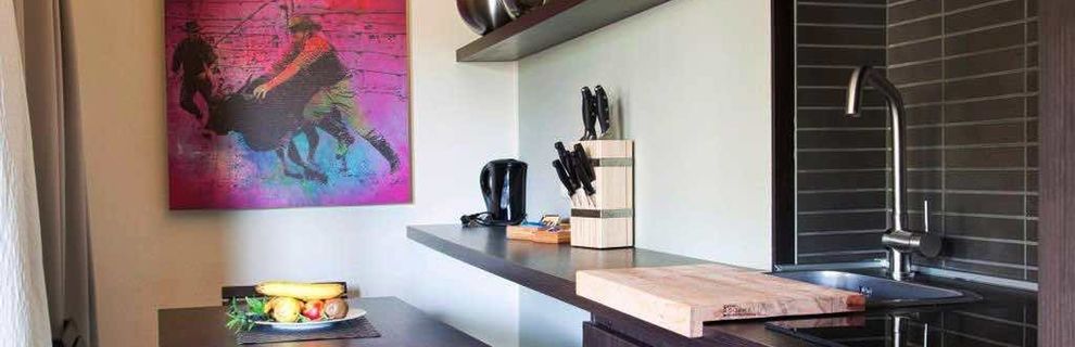 Dwupokojowy bungalow dla 2 osób dorosłych i 1 dziecka do 10 lat (ok. 21 m kw.). Pomieszczenie mieszkalno- sypialne z sofą (futon). Pokój dwuosobowy.