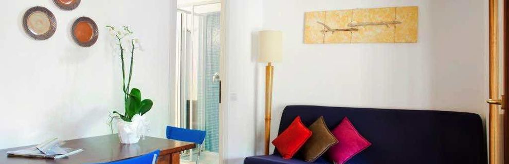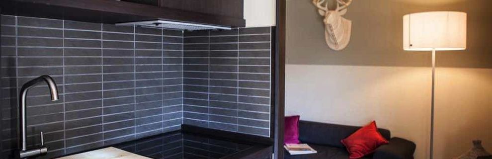 2 połączone drzwiami dwupokojowe bungalowy (każdy ok. 21 m kw.) dla 4 osób dorosłych i 2 dzieci do 10 lat.