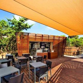 Recepcja, restauracja/ pizzeria z tarasem, duży, bardzo ładny, zadaszony taras z kącikiem wypoczynkowym, bar, minimarket, bar i kiosk przy basenie (ok. 07.05.-15.10.), 3 pralki na monety. Parking.
