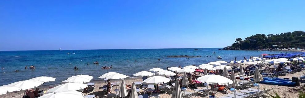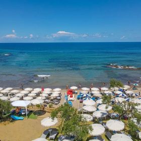 Piaszczysto-żwirkowa plaża z łagodnym i kamienistym zejściem do morza, znajduje się 300 m od hotelu. Dojście ścieżką przez ogród lub bezpłatnym busem. Na miejscu bezpłatny serwis plażowy: leżaki i parasole oraz beach bar.