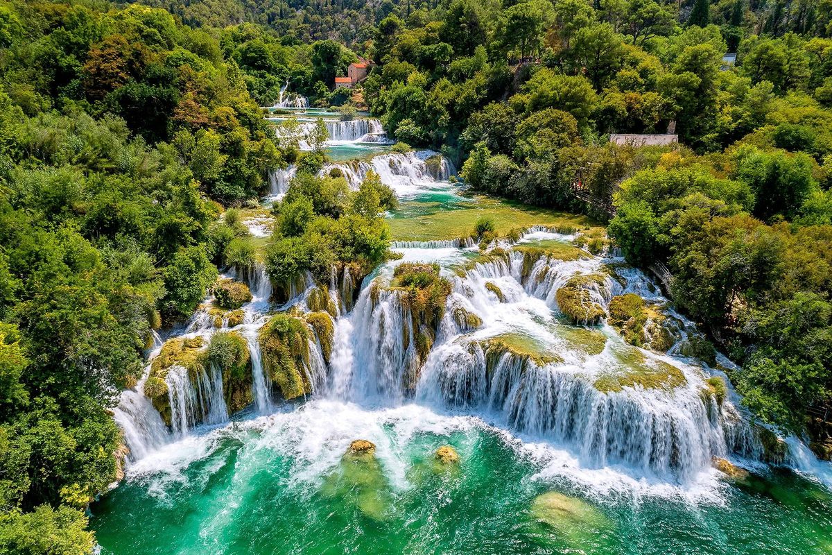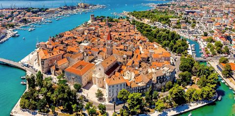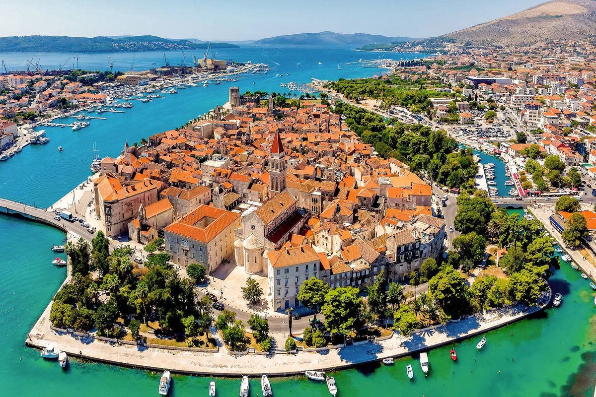 Zbiórka na lotnisku przy stanowisku odpraw Rainbow na 2 godziny przed wylotem samolotu. Wylot do Chorwacji samolotem czarterowym. Aktualne rozkłady prosimy sprawdzać na stronie operatora. Po przylocie spotkanie z pilotem transferowym, następnie przejazd do malowniczego Trogiru, który jest doskonałym przykładem ciągłości miasta. Układ ulic tej wyspiarskiej osady pochodzi z czasów greckich, a późniejsi władcy upiększyli je wyjątkowymi budynkami publicznymi, mieszkalnymi i twierdzami. Zobaczymy między innymi gotycko-renesansowy ratusz i katedrę św. Wawrzyńca z XIII w. Trogir jako jedno z najlepiej zachowanych miast romańsko-gotyckich w centralnej Europie, został wpisany na listę UNESCO. Po zwiedzaniu miasta z przewodnikiem i czasie wolnym, transfer do hotelu, zakwaterowanie, obiadokolacja, nocleg. Dzień 2