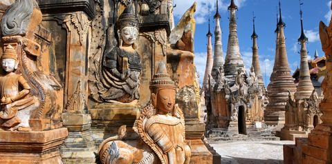 Złocone pagody i drewniane klasztory. Liczne posągi Buddy oklejone płatkami złota. Największa księga świata i najstarszy most tekowy na świecie. Przejazd tradycyjną bryczką konną. Setki świątyń i zachwycających stup w Baganie. Tradycyjne birmańskie przedstawienie kukiełkowe. Okryta czcią Góra Popa. Jezioro Inle z pływającymi domami i ogrodami hiacyntów. Wyroby z jedwabiu, drewna i laki.