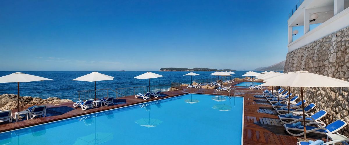 Luksusowy i elegancki, położony tuż przy morzu, na pachnącym sosnami półwyspie Lapad. Z hotelu rozciąga się cudowny widok na Adriatyk i wyspy Elafickie! Kilka kroków stąd do urokliwej plaży z serwisem, idealnej na beztroski relaks na leżaku i wodne szaleństwa. W hotelu komfortowe pokoje, nowoczesne wnętrza i słynące z doskonałej kuchni restauracje. Można tu wypocząć przy jednym z basenów lub w hotelowej strefie spa. Idealna lokalizacja dla lubiącym spokojną okolicę, jednocześnie w odległości spaceru od restauracji i jedynie 4 km od centrum Dubrownika.