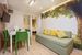 • Wyposażony aneks kuchenny: płyta indukcyjna, mikrofalówka, piekarnik, lodówka z zamrażarką, zestaw do kawy/herbaty