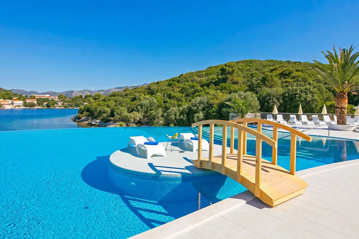 Chcesz się zatrzymać w malowniczym, bezpiecznym porcie, gdzie rano będzie Cię budził szum morza? Ten hotel to idealny wybór! Położony tuż przy plaży, na pięknej wyspie, niedaleko centrum klimatycznego miasta Korčula, zaprasza na beztroskie wakacje w wyjątkowym otoczeniu. W hotelu jasne, przestronne pokoje, restauracje i bary, w tym na plaży, a także baseny, z których podziwiać można niezapomniane widoki na zatokę. Na dzieci czeka tu plac zabaw oraz rozrywkowe animacje dla całej rodziny. Koniecznie wypożycz rower i zwiedź miasto oraz jego okolicę!