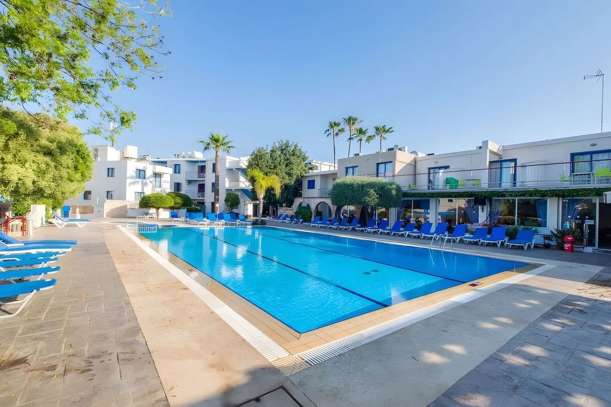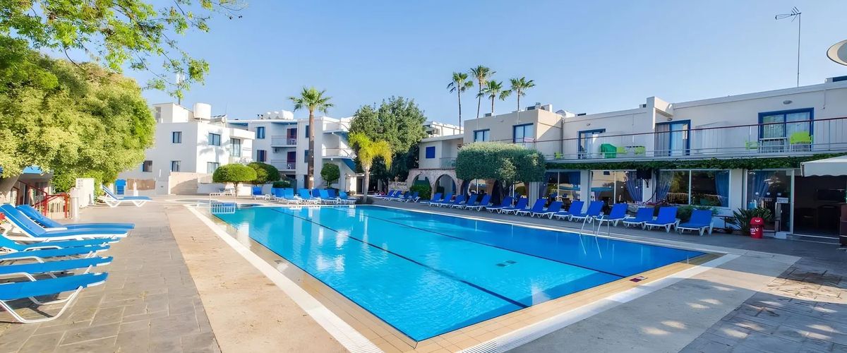 Położony blisko centrum popularnego turystycznego kurortu Ayia Napa, w odległości spaceru od plaży wyróżnionej Błękitną Flagą i niedaleko wielu lokalnych atrakcji, zaprasza na urlop w promieniach cypryjskiego słońca. Zbudowany z myślą o wypoczynku dla całej rodziny, oferuje zakwaterowanie w funkcjonalnych pokojach z aneksami kuchennymi. Do dyspozycji Gości jest restauracja śniadaniowa, bar, w którym można wypić orzeźwiającego drinka oraz zadbany basen. Zwolennicy aktywnego spędzania czasu mogą pograć w tenisa stołowego, a najmłodsi pobawić się w brodziku. Całość udanego pobytu dopełni miła i pomocna obsługa, dzięki której wakacje w tym miejscu upłyną w fantastycznej atmosferze.