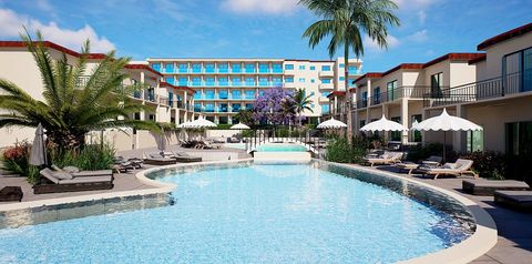Wyobraź sobie poranki z widokiem na malownicze Protaras, rodzinne chwile spędzone w hotelowym aquaparku oraz relaks na złocistej, piaszczystej plaży oddalonej zaledwie kilka minut spacerem. Nowoczesny, czterogwiazdkowy Sun Palace Waterpark Resort, którego otwarcie planowane jest na 2026 r., to miejsce łączące komfort, rozrywkę i cypryjską gościnność. Na Gości czekają przestronne pokoje, baseny otoczone leżakami, animacje dla dzieci i dorosłych oraz znana i lubiana formuła all inclusive. Prezentowany materiał graficzny przedstawia wizualizację obiektu.