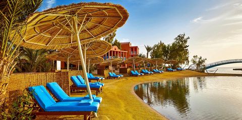 Położony na 9 wyspach Morza Czerwonego w słynnej lagunie El Gouna, został zaprojektowany przez znanego architekta Michaela Gravesa. Komfortowe i przestronne pokoje znajdują w budynkach wzorowanych na architekturze starożytnego Egiptu. Goście mają do dyspozycji szeroki wybór barów i restauracji, w tym bar na plaży objęty all inclusive. Hotel oferuje także wiele możliwości na aktywne spędzenie czasu, są tu 2 duże baseny, centrum spa, a w okolicy można znaleźć świetne miejsca do nurkowania. Zrelaksuj się i ciesz wypoczynkiem z pięknym widokiem na morze w tle.