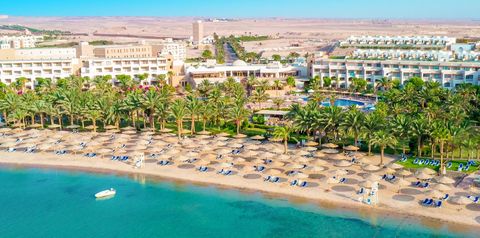 Czas na egipską eskapadę w luksusowej odsłonie! Zaprojektowany w duchu „One Destination for All” to obietnica wymarzonych wakacji dla każdego – możesz aktywnie spędzić czas podczas zajęć jogi czy aerobiku, próbując swoich sił w sportach wodnych lub grach, a dzieciaki będą zachwycone basenami i wesołymi animacjami, przygotowanymi specjalnie dla nich! Szukający błogiego relaksu, odnajdą go podczas zabiegów i masażów w centrum spa, a kulinarni smakosze odbędą wspaniałą podróż po smakach świata w formule all inclusive! Oczaruje Cię wszechobecna, soczysta zieleń ogrodu, a także plaża, która jest najdłuższą i jedną z najpiękniejszych plaż w zatoce Makadi – koniecznie zabierz ze sobą aparat fotograficzny i krem z filtrem!