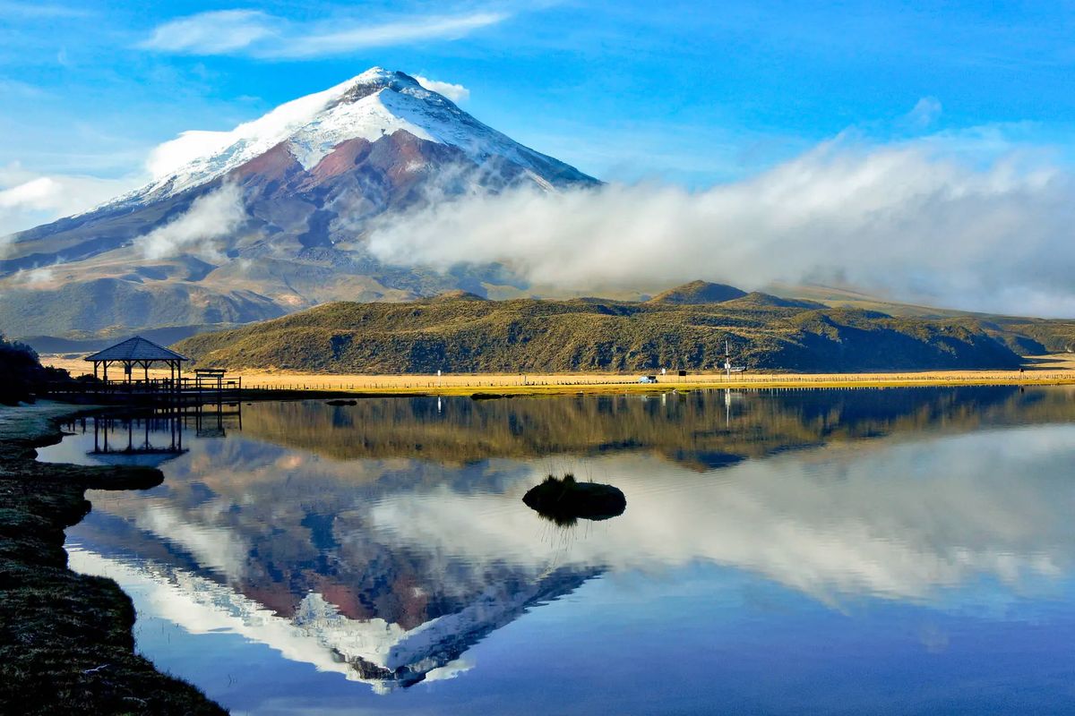 Po śniadaniu wycieczka do Parku Narodowego Cotopaxi i wulkanu Cotopaxi - 5897 m n.p. m., najwyższego czynnego wulkanu na świecie. Podroż ok. 30 min. po drodze asfaltowej i 1 godz. po utwardzonej, dojazd na parking znajdujący się na wysokości 4500 m n.p. m. Podczas podróży będziemy mieli okazję do obserwowania tzw. laharów, różnej wielkości kawałków skalnych wypływających z wulkanów oraz roślin typowych dla strefy paramo. Przejazd wyschniętym dnem jeziora, wspinaczka do schroniska Jose Rivas na 4864 m n.p. m., trekking do lodowca (5000 m n.p. m.) - punkt ten realizowany jest w zależności od warunków pogodowych. Następnie przystanek na zdjęcia nad brzegiem jeziora Limpiopungo (3800 m n.p. m.), obserwowanie ptaków (endemiczne mewy, dzikie kaczki i inne) i dzikich koni. Przejazd w kierunku Baños do dżungli nadamazońskiej. Po drodze przystanek przy punkcie widokowym na jezioro Yambo. Przejazd przez wioskę Indian Salasaca (targ wyrobów ludowych) do miejscowości Baños, gdzie znajduje się sanktuarium Matki Boskiej. Pięknie położone, na stromych uskokach Wulkanu Tungurahua, Baños to miejsce, gdzie Andy przechodzą w dżunglę nadamazońską. Zakwaterowanie w hotelu, kolacja i nocleg. (Trasa ok. 200 km)