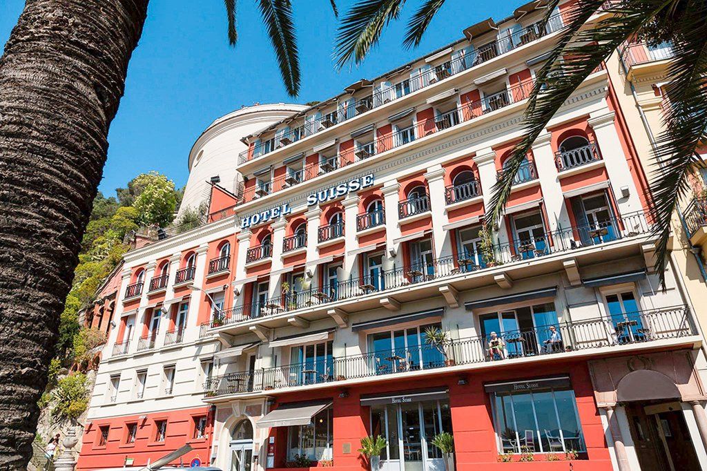 Hotel Suisse, budynek w stylu włoskim, szczyci się wyjątkową lokalizacją nad morzem, z zapierającymi dech w piersiach widokami na Zatokę Aniołów i Promenadę Anglików. 37 pokoi i apartamentów oferuje wspaniałą panoramę i charakteryzuje się czystymi, nowoczesnymi liniami. Recepcja, winda, kącik biznesowy: komputer z bezpłatnym dostępem do internetu i drukarką, bar, parking publiczny 5 minut spacerem.