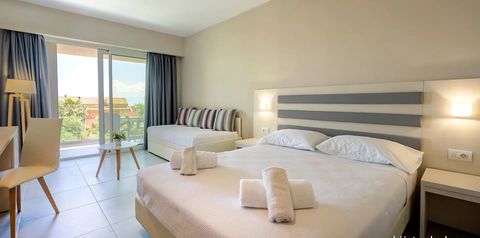 Położony w turystycznej miejscowości Messonghi, kilka kroków od ładnej plaży i w otoczeniu zielonych wzgórz, zaprasza na ekscytujące wakacje na niezwykłej wyspie Korfu! Możesz tutaj nie tylko odpocząć przy szumie fal, ale i wziąć udział w animacjach, zagrać w minigolfa lub popływać w dużym basenie, który jest ulubionym miejscem Gości na wspólne spędzanie czasu w promieniach greckiego słońca. Na miejscu są 2 bary, w tym przy basenie oraz restauracja, gdzie można skosztować popularnych w Grecji specjałów kuchni śródziemnomorskiej. Dzieciaki pluskają się tu w brodziku i szaleją na placu zabaw, podczas gdy dorośli cieszą się beztroskim urlopem opalając się na leżaku. Korfu czeka!