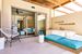 • Taras z dostępem do prywatnego basenu oraz zewnętrznej wanny (stolik i krzesełka, leżaki)
