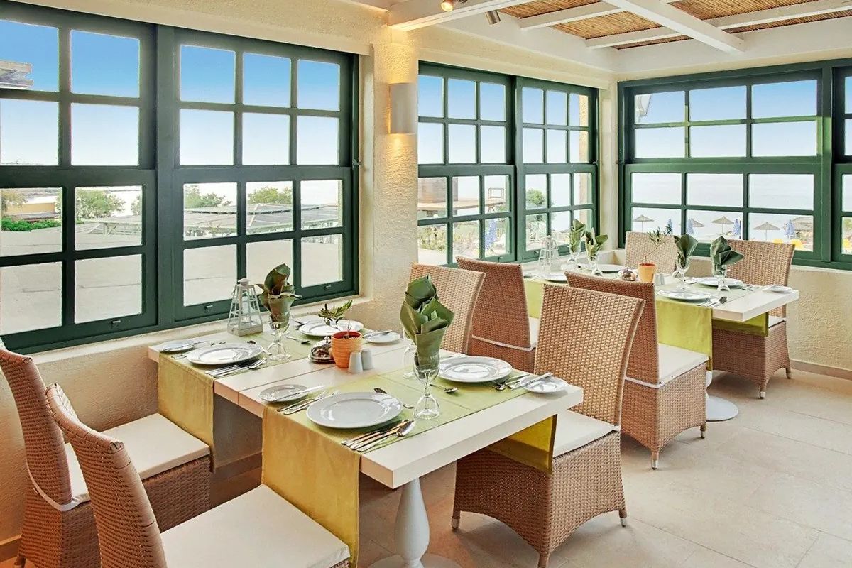 Kameralna architektura z niską zabudową, kamiennymi murami i małymi placykami przypomina śliczną kreteńską wioskę z kwiatami i śródziemnomorską roślinnością. Znakomita formuła all inclusive ze starannie dobranym menu oraz pyszne potrawy z wyselekcjonowanych produktów znajdują uznanie wielu Gości, a uśmiechnięta obsługa dba o komfortowy wypoczynek. To idealne miejsce na relaks w greckim stylu!