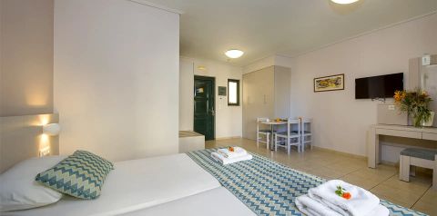 Urzeka prostą, nowoczesną architekturą budynków położonych w zadbanym ogrodzie z palmami i trawnikami. Przy znakomicie utrzymanych basenach znajdują się przytulne bary, idealne miejsce, by leniwie sączyć drinka. Bardzo ładne, klasycznie eleganckie studia są znakomicie wyposażone. W zasięgu zaledwie kilku kilometrów leży przepiękna Chania, rozrywkowe Platanias i sympatyczna Agia Marina.