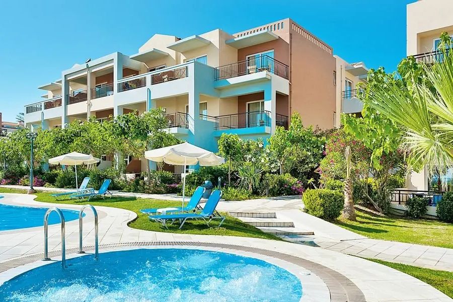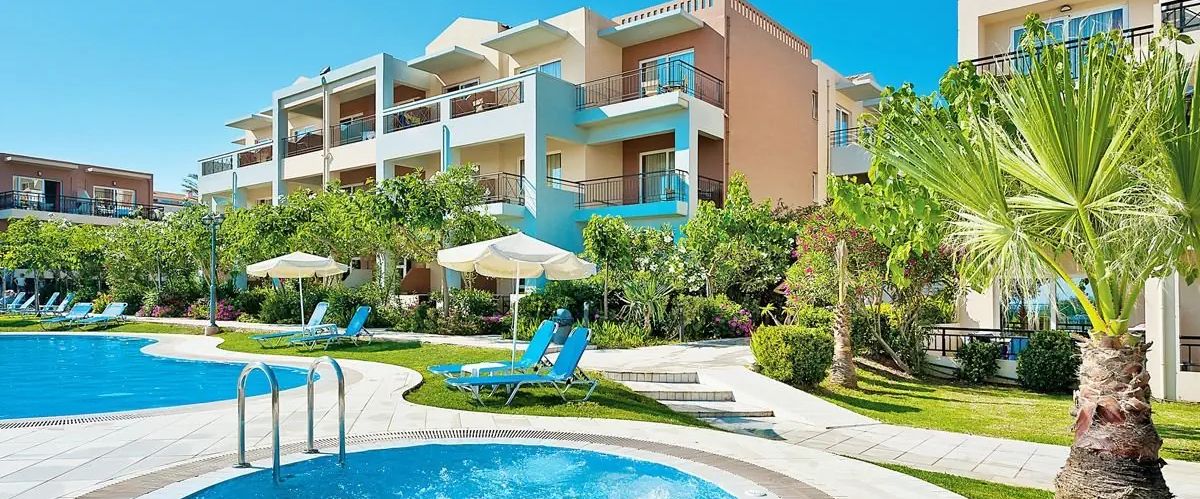 Położony w jednym z piękniejszych zakątków Krety, składa się z budynków w niskiej zabudowie, które zlokalizowane są wokół 2 basenów z jacuzzi. Położony blisko plaży, w odległości spaceru od centrum Kolymbarii, jest świetnym miejscem na beztroskie wakacje w spokojnej okolicy. Hotelowy aquapark z kolorowymi zjeżdżalniami dostarczy niezapomnianych wrażeń, a przestronne i stylowe pokoje bez problemu pomieszczą nawet rodzinę z dwójką dzieci. Pozytywne opinie zyskał również dzięki smacznej kuchni i miłej obsłudze.