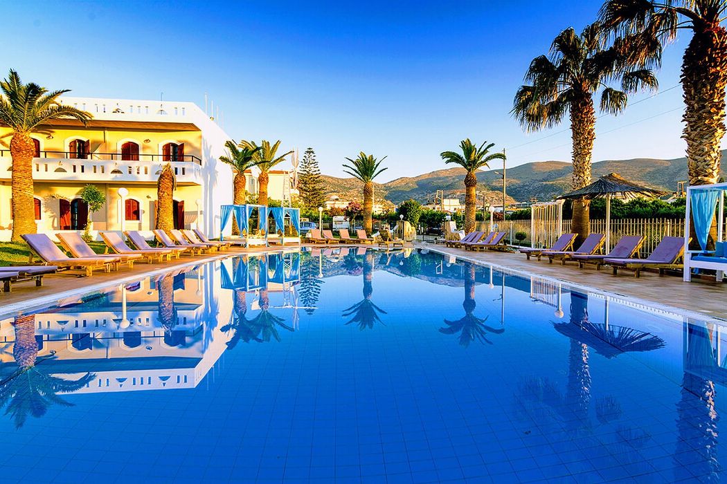 Około 200 m od piaszczystej plaży leży hotel Stelios Gardens Malia. Na plaży parasole słoneczne i leżaki do opalania dostępne są za opłatą. Do turystycznego centrum jest ok. 900 m. Miasto Heraklion jest oddalone o około 34,6 km (Stalida około 3,3 km, Hersonissos około 7,3 km). Najbliższe sklepy znajdują się ok. 200 m od hotelu, do najbliższego supermarketu można dotrzeć po ok. 900 m. Najbliższe bary i restauracje położone są w odległości ok. 220 m. Najbliższa dyskoteka oddalona jest o około 250 m. Z hotelu można wygodnie dotrzeć do następujących atrakcji: Creta Aquarium (ok. 20 km), Knossos archaeological site (ok. 37,6 km), Lychnostatis Museum oraz Minoan Palace Malia. Wypożyczalnia samochodów, wypożyczalnia motocykli, postój taksówek (ok. 1 km) i przystanek autobusowy (ok. 1,1 km) zapewniają mobilność podczas urlopu. W nagłych sytuacjach opieki medycznej udzieli oddalony o ok. 30 km szpital. Lotnisko (HER) położone jest ok. 30 km od hotelu. Między hotelem a lotniskiem dostępny jest odpłatny transfer. Kolejne lotnisko (CHQ) jest oddalone o ok. 180 km. Wyposażenie :