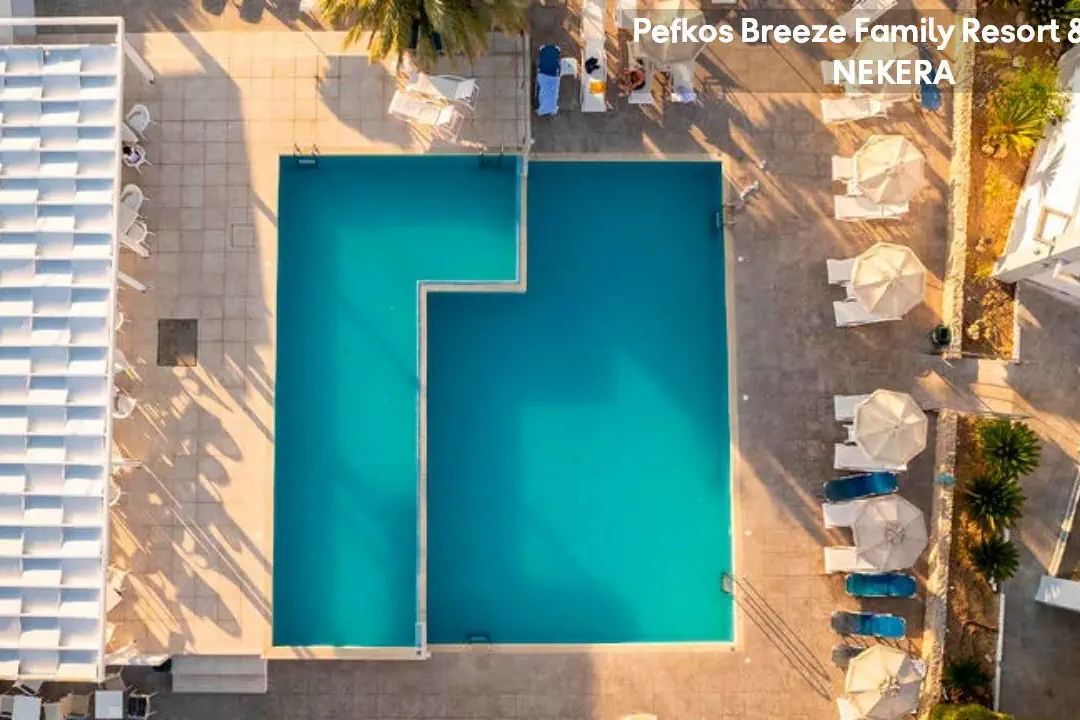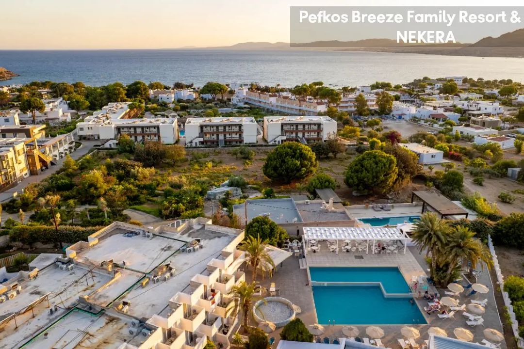 Na zachodnim brzegu wyspy Rodos, w spokojnej w dzień oraz tętniącej życiem w nocy miejscowości Pefki. Centrum z sklepami, restauracjami i barami znajduje się ok. 300 m od hotelu, przystanek autobusowy ok. 750 m. Starożytne ruiny w Lindos ok. 5 km, waterpark w Faliraki ok. 44 km, miasto Rodos ok. 52 km. Międzynarodowy port lotniczy Rodos oddalony o ok. 56 km.
