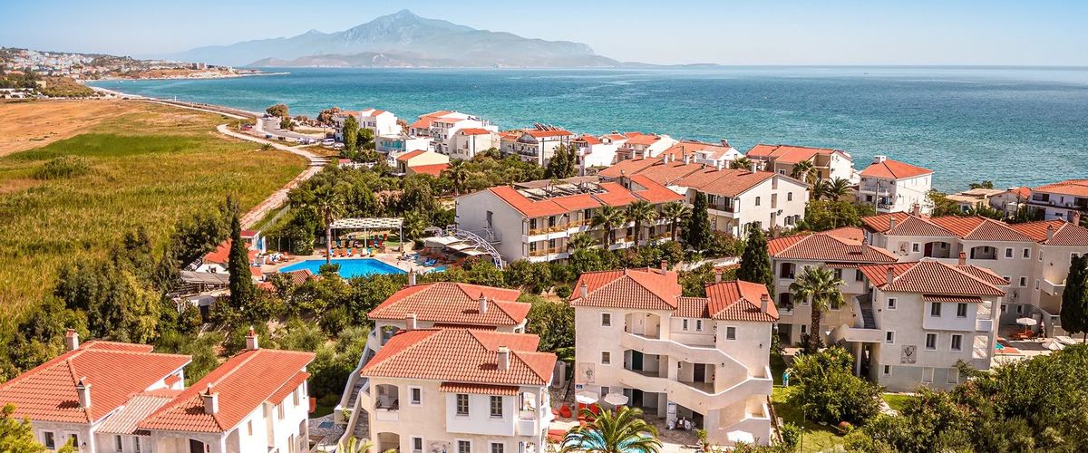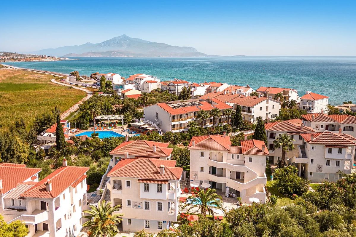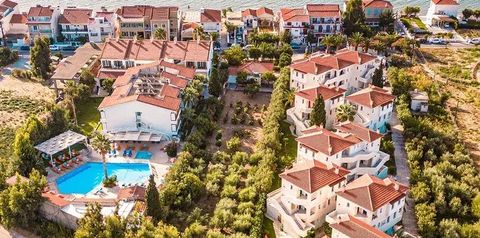 Hotel nieduży, w greckim stylu, świetnie usytuowany przy samym morzu, w pobliżu uroczego misteczka Pitagorio oraz w pobliżu lotniska. Biorąc pod uwagę fakt, iż jest tylko kilka lotów dziennie, to obserwowanie startujacych samolotów jest to dodatkową