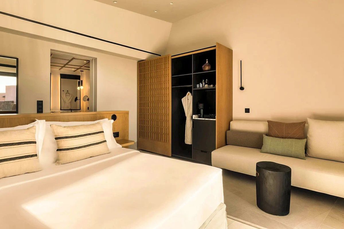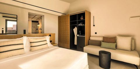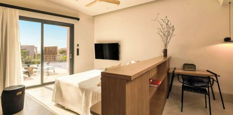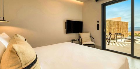 Błękit morza na horyzoncie, minimalistyczna architektura i basen infinity z pięknym widokiem – to świetne miejsce na urlop w pięciogwiazdkowym stylu! Poczuj wyjątkowy klimat, który łączy nowoczesność z lokalnym charakterem wyspy, podziwiaj zachody słońca i naładuj w pełni baterie. Stylowo urządzone pokoje z bezpośrednim dostępem do basenu sprzyjają wypoczynkowi, a serwowane dania pozwalają odkrywać smaki greckiej kuchni. To miejsce, w którym wszystko zostało dopracowane z myślą o komforcie i dobrym samopoczuciu.