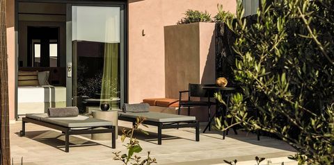 • Taras (stolik, krzesełka i leżaki) z bezpośrednim zejściem do basenu współdzielonego z innymi pokojami senses retreat