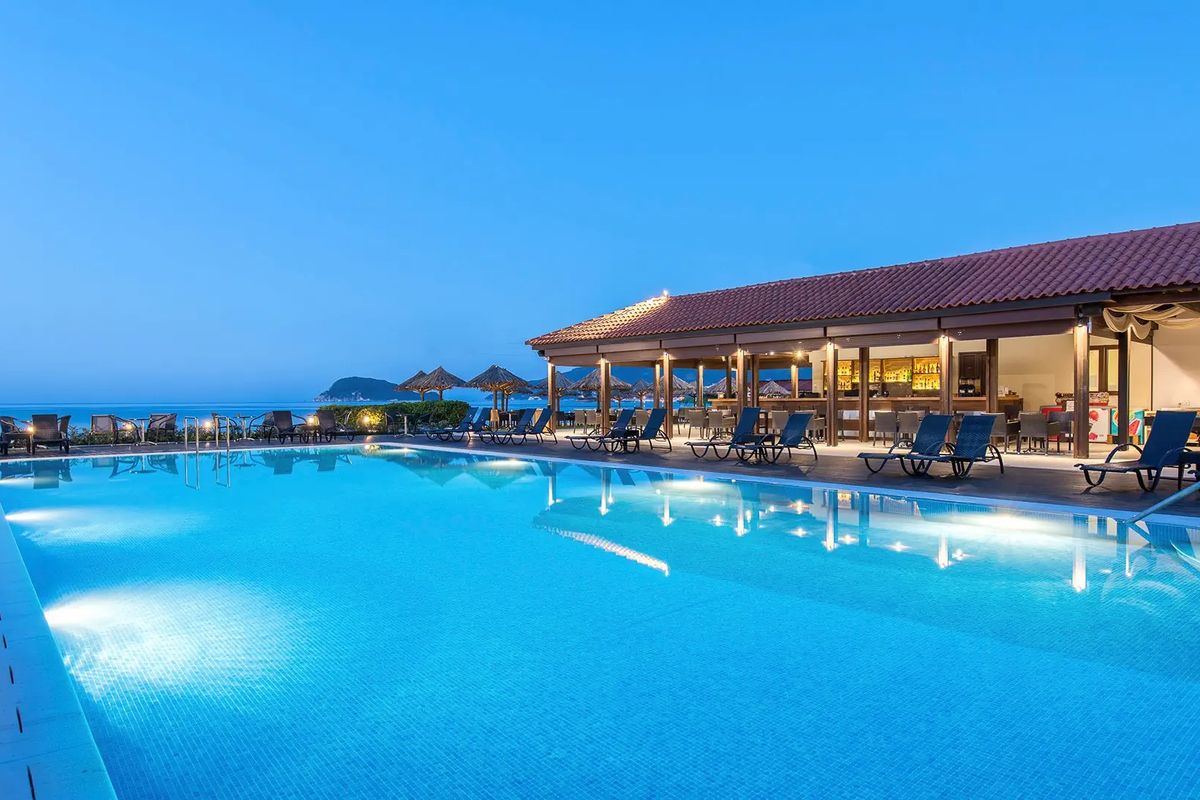 Kameralny i zadbany, zaprasza na rodzinne wakacje blisko tętniącego życiem centrum Laganas. Atrakcyjnie położony, bezpośrednio przy pięknej, piaszczystej plaży łagodnie opadającej do morza, idealnej zarówno na relaks, jak i uprawianie sportów wodnych. Do dyspozycji Gości jest ładny basen, na dzieci czeka basen z mini zjeżdżalniami i plac zabaw. Z hotelowego tarasu i basenu można podziwiać wspaniały widok na morze.