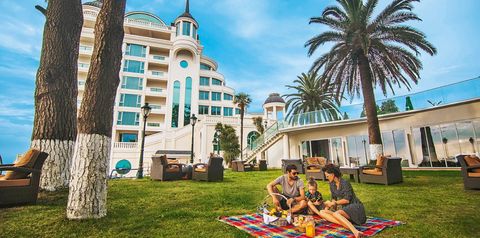 Pięknie położony na klifie, tuż przy plaży i w samym sercu parku z tropikalną roślinnością jest doskonałym wyborem na romantyczny wyjazd. Jego historia sięga początków XX w., kiedy był znanym uzdrowiskiem. Na Gości czekają przestronne pokoje, 2 baseny, w tym infinity oraz centrum spa z jacuzzi, saunami i zabiegami pielęgnacyjnymi. Warto również zwiedzić okolicę i wybrać się do historycznej twierdzy Petra oraz na wycieczkę do Batumi.