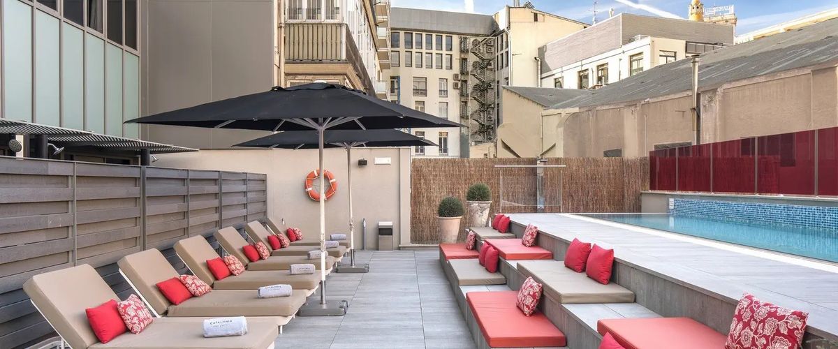 Mieszkaj w centrum i zwiedzaj Barcelonę jak chcesz – nawet na piechotę! Hotel leży w samym sercu miasta, w historycznej i handlowej dzielnicy Barcelony, tuż obok Plaza Catalunya i Paseo de Gracia. W okolicy jest dużo popularnych sklepów i restauracji, a tak słynne miejsca jak Dzielnica Gotycka, Sagrada Familia, Las Ramblas, Casa Batlló czy Park Güell znajdują się w odległości spaceru. Na miejscu na Gości czekają ładnie urządzone pokoje, jadalnia, gdzie podawane są śniadania, a także przyjemnie zaaranżowany basen na tarasie z parasolami i leżakami, gdzie Goście lubią odpoczywać po zwiedzaniu.