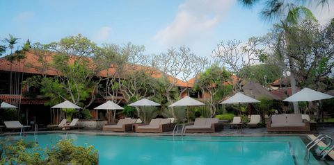 Bali zachwyca egzotycznymi krajobrazami, plażami i atmosferą, która od razu wprowadza w wakacyjny nastrój. Tuż przy jednej z plaż z wydzieloną częścią hotelową i bezpłatnym serwisem położony jest resort, który idealnie wpisuje się w balijski charakter miejsca – otaczająca go bujna, tropikalna roślinność, szum palm i wszechobecna zieleń tworzą wyjątkowy klimat. W rozległym ogrodzie wkomponowano 3 baseny, przy których można spędzać długie, leniwe godziny, a komfortowe pokoje, przyjazna obsługa i kameralna siłownia sprawiają, że pobyt łączy relaks z wygodą i odrobiną aktywności.