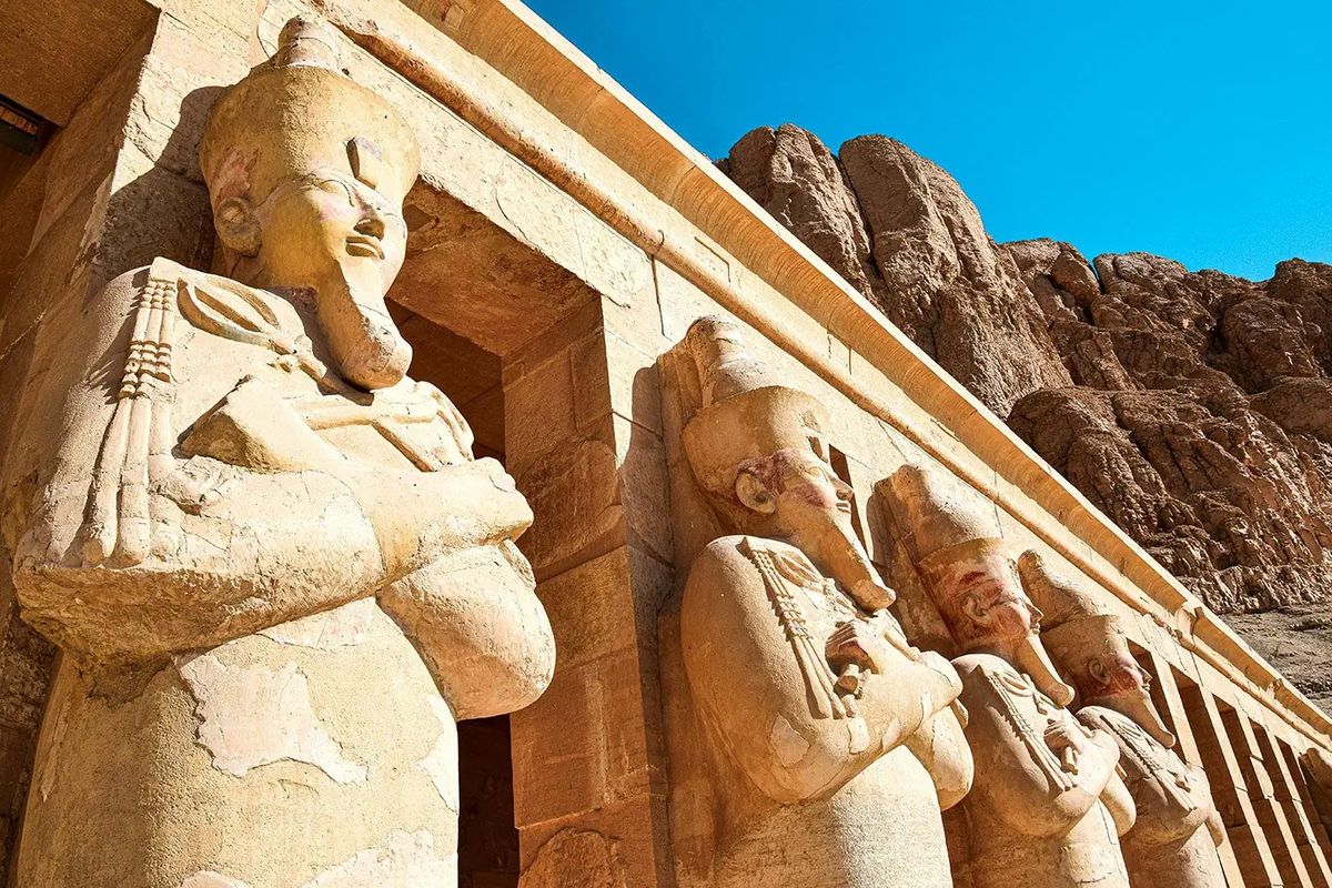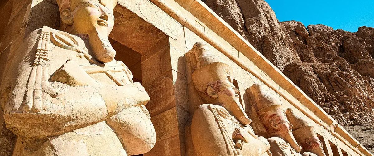 Dzień 6. Luksor - Kair. Śniadanie na statku. Po śniadaniu wykwaterowanie ze statku. Wyruszymy na zachodni brzeg, aby zwiedzić Dolinę Królów, gdzie faraonowie spoczywają w ukrytych grobowcach. Świątynia Hatszepsut (Świątynia Milionów Lat), jedna z najbardziej niezwykłych w całym kraju. Zachwyci swoją architekturą i położeniem u stóp ogromnej ściany skalnej. Świątynia została zbudowana ku czci boga Amona. Po drodze zobaczymy również Kolosy Memnona, czyli posągi faraona Amenhotepa III. Wznoszą się na wysokość ponad 15 metrów! Lunch w lokalnej restauracji. Następnie udamy się na zwiedzanie Wschodniego Brzegu. Odwiedzimy kompleks świątyń w Karnaku, gdzie monumentalne kolumny i sfinksy tworzą zapierającą dech w piersiach scenerię. Po zakończeniu zwiedzania przejazd na lotnisko w Luksorze i przelot do Kairu. Zakwaterowanie w hotelu w Kairze.