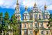 Zwiedzanie byłej stolicy Kazachstanu. Wizyta na ponad stuletnim Green Bazaar, przyciągającym turystów nie tylko szeroką gamą produktów, ale też wyjątkową atmosferą. Spacer przez Park Panfiłowa do cerkwi Wniebowstąpienia (katedra Zenkow). Zbudowana na początku XX w. jest drugim najwyższym drewnianym budynkiem na świecie. Obok znajduje się pełen ekspresji Pomnik Chwały z płonącym obok wiecznym ogniem; upamiętnia on żołnierzy walczących za wolność i niepodległość kraju. Wizyta w Muzeum Ludowych Instrumentów Muzycznych, gdzie w 9 salach można zapoznać się np. z technikami wytwarzania czy metodą gry na poszczególnych eksponatach. Następnie wizyta w Muzeum Historycznym, mieszczącym kolekcje m.in. z dziedzin archeologii, paleontologii, tradycyjnej kultury kazachskiej, a także z czasów współczesnych. Przejazd na wzgórze Kok Tobe, skąd rozciąga się panorama miasta. Zjazd kolejką linową. Kolacja.