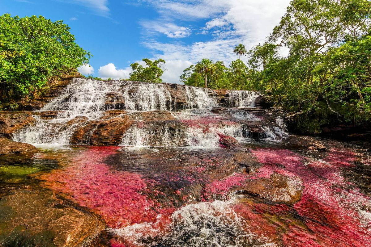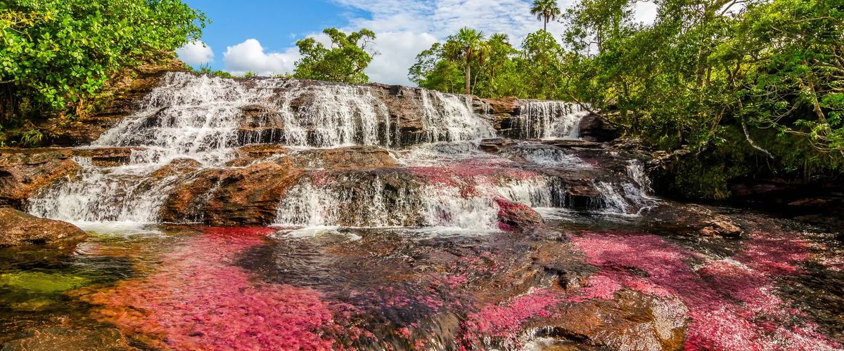 Śniadanie (możliwy breakfast box). Transfer na lotnisko i przelot do miejscowości La Macarena, przez którą przepływa niezaprzeczalnie najbardziej wyjątkowa atrakcja turystyczna Kolumbii – tęczowa rzeka Caño Cristales. Nieliczni do tej pory mieli okazję ją podziwiać, gdyż tereny na której jest położona, były okupowane przez partyzantkę FARC. Obecnie po zakończeniu wojny domowej, jest tu bezpiecznie, a my dzięki temu będziemy mogli być świadkami jednego z cudów natury. Rzeka zawdzięcza kolor endemicznej roślinie macarenia clavigera, która pod wpływem promieni słonecznej eksploduje różnymi odcieniami czerwieni i fioletu. W programie spacer na najważniejsze punkty widokowe. Zakwaterowanie. Kolacja i nocleg. Dzień 4