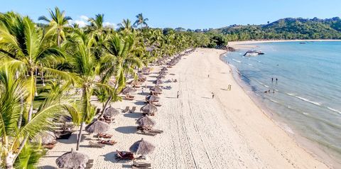 Rewelacyjne miejsce na wymarzone egzotyczne wakacje – tutaj każdy znajdzie coś dla siebie! Do wyboru dwie zjawiskowe, hotelowe, piaszczyste plaże oferujące różne sposoby spędzania wolnego czasu – jedna spokojna, idealna na błogi relaks z książką w ręku, druga – dla aktywnych, z bogatą ofertą sportową. Duży basen z rewelacyjnym widokiem, rozległy ogród z bujną roślinnością, w którym można spotkać lemury, żółwie i kameleony oraz hotelowe centrum wellness kuszące ofertą masaży i zabiegów to kolejne atuty tego miejsca. Na uwagę zasługuje również położona na skale hotelowa restauracja Pily Pily, która oprócz wyśmienitych owoców morza, oferuje zapierający dech, panoramiczny widok na zatokę. Hotel polecany zarówno na romantyczne wakacje we dwoje, jak i na aktywny wypoczynek z rodziną.