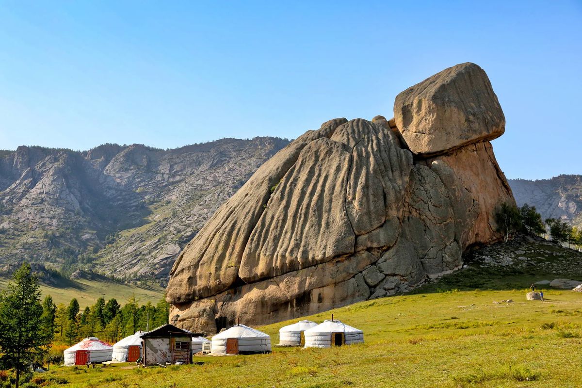 Wczesne śniadanie (możliwe w formie pakietów). Następnie wyruszymy się w stronę Parku Narodowego Terelj malowniczą trasą przez dolinę otoczoną bujnymi, lesistymi wzgórzami i zapierającymi dech w piersiach granitowymi klifami. Naszym pierwszym przystankiem będzie Pomnik Czyngis-Chana - największy pomnik konny na świecie, 40-metrowy posągu ze stali nierdzewnej symbolicznie skierowany na wschód, w stronę jego miejsca urodzenia. W miarę możliwości czasowych, będzie możliwość wejścia na szczyt pomnika, skąd roztacza się wspaniały panoramiczny widok na okoliczny krajobraz. Dodatkowo odwiedzimy małe muzeum, które oferuje kompleksowy przegląd historii Wielkiego Imperium Mongolskiego, w tym genealogii wielkich chanów i ich podbojów. Na koniec odwiedzimy Skałę Żółwia oraz Klasztor Aryaval. Powrót i nocleg w schronisku Terelj. Dzień 4