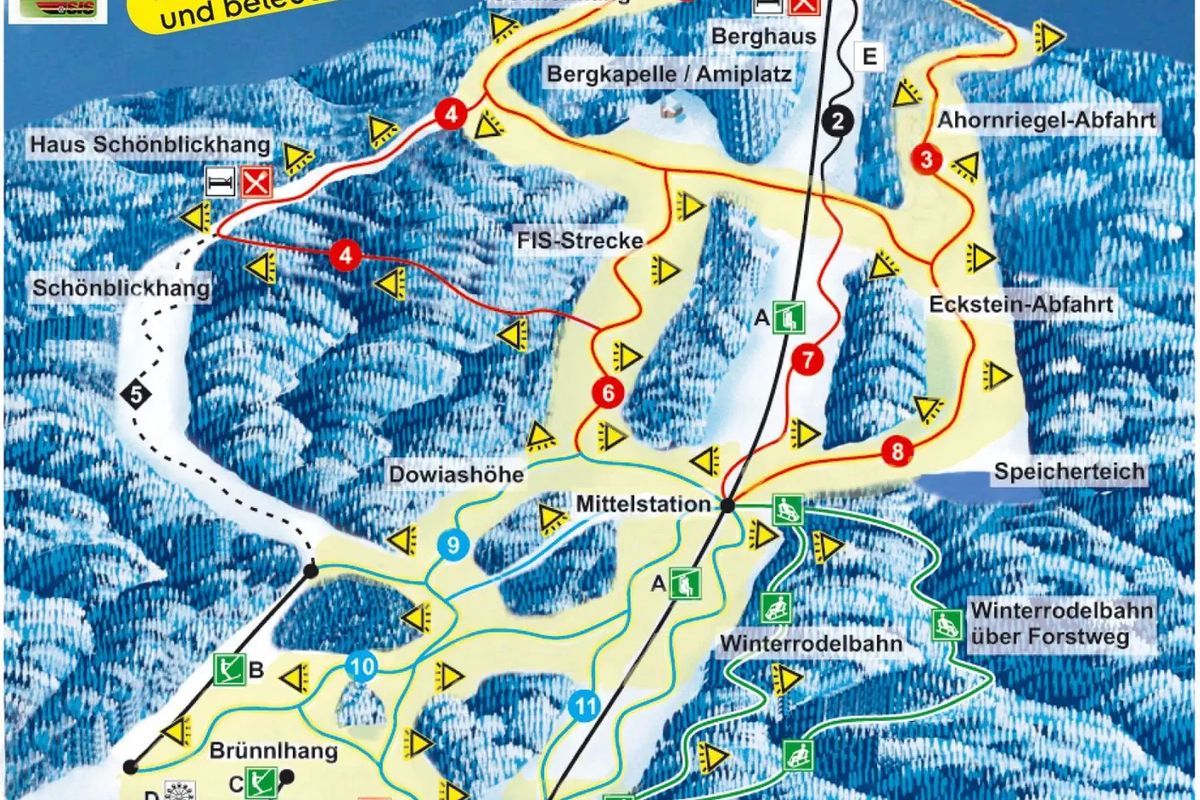 Maks. wysokość: 1050 mMin. wysokość: 657 mWys. miejscowość: 484 mWyciągi łącznie: 3Orczyki: 2Krzesełka: 1Trasy łącznie: 6 kmTrasy zielone/niebieskie: 3 kmTrasy czerwone: 2 kmTrasy czarne: 1 km