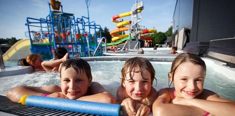 • Dostęp do zewnętrznego Aquaparku z multimedialną zjeżdżalnią, dwóch zewnętrznych basenów rekreacyjnych z podgrzewaną wodą i z brodzikami dla dzieci, a także do zewnętrznych wanien jacuzzi