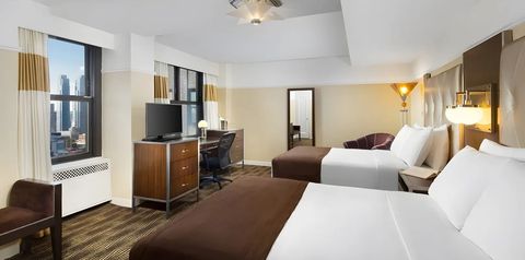 Zatrzymaj się w jednym z najbardziej ikonicznych hoteli Nowego Jorku i poczuj klimat miasta, które nigdy nie śpi. Zachwycą Cię wnętrza w stylu art déco emanujące ponadczasową elegancją, a miła i profesjonalna obsługa zadba o to, by każda chwila spędzona w tym miejscu była dla Ciebie prawdziwą przyjemnością. To doskonała baza wypadowa do zwiedzania miasta – zaledwie kilka kroków dzieli hotel od Madison Square Garden, a majestatyczny Empire State Building i gwarny Times Square znajdziesz w odległości dłuższego spaceru. Pragniesz odwiedzić także dalsze zakątki Manhattanu? Świetnie się składa! Dzięki przystankom komunikacji miejskiej położonym tuż obok łatwo dotrzesz do wybranych atrakcji tak, by w pełni korzystać z uroków metropolii.