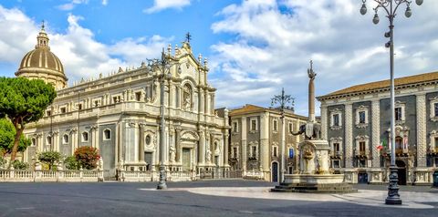Po śniadaniu przejazd na majestatyczną Etnę — największy czynny wulkan w Europie. Wspólnie dotrzemy w okolicę kraterów Silvestri na wysokość ok. 2000 m n.p. m. Za dodatkową opłatą, możliwość skorzystania ze znajdującej się w tym miejscu kolejki górskiej, którą można wjechać na ok. 2500 m n.p. m (ok. 60 EUR/os.). Wjazd można połączyć z wycieczką specjalnym samochodem terenowym na wysokość ok. 2900 m n.p. m, w której towarzyszyć będzie miejscowy przewodnik-wulkanolog (koszt łącznie z wjazdem kolejką to ok. 95 EUR/os.). Następnie przejazd w Kierunku Katanii. Po drodze zatrzymamy się w miejscowościci Zafferana słynącej z wyśmienitych miodów na bazie roślin endemicznych porastających zbocza Etny. W Katanii będziemy mieli okazję poznać smak cycków św. Agaty (miejscowy deser) oraz historię miasta i jej patronki. Przejdziemy spacerem po Piazza Duomo, zatrzymamy się przy zamku Ursino, by zobaczyć miejsce, gdzie dotarła lawa po erupcji w XVII wieku. Spacerując ulicami miasta będziemy podziwiać panoramę barokowej Katanii, piękne pałace i bogato zdobione kościoły i klasztory. Powrót do hotelu, nocleg. (Trasa ok. 130 km). Dzień 3