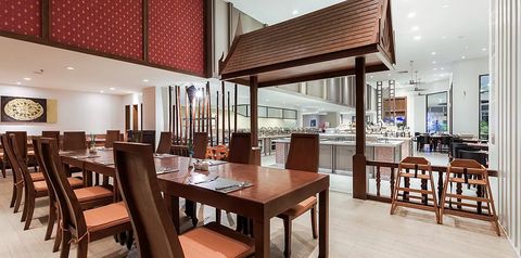 • Restauracja Phuket Cafe – dania w formie bufetu lub serwowane, kuchnia tajska i międzynarodowa, dostępne foteliki dla dzieci