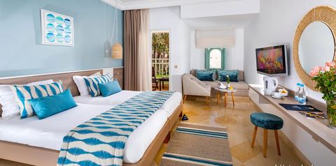 Położony na rozległym terenie porośniętym palmami i przy piaszczystej plaży, jest idealną propozycją na rodzinny urlop w promieniach tunezyjskiego słońca. Na miejscu możesz odpocząć na leżaku przy basenie, zadbać o formę podczas jogi lub pilatesu, a także odprężyć się przy muzyce na żywo lub spróbować swoich sił w karaoke. Dla najmłodszych przygotowano brodzik, gry i zabawy w miniklubie oraz minidisco! Po dniu pełnym wakacyjnych atrakcji wypocznij w przestronnych i komfortowych pokojach. Dopełnieniem udanego pobytu jest bogata formuła all inclusive. Chwalony za miłą i pomocną obsługę oraz typowo wakacyjną atmosferę.