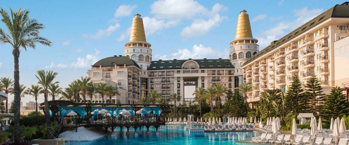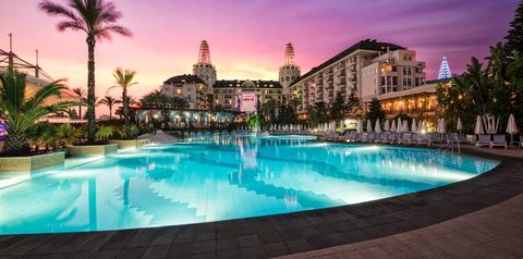 Zbudowany z prawdziwym rozmachem i przepychem, położony w dzielnicy Lara-Kundu, bezpośrednio przy szerokiej i piaszczystej plaży. Ciekawa architektura, gustownie urządzone pokoje, 5 basenów, w tym 1 ze zjeżdżalniami i 1 kryty oraz bogata oferta all inclusive plus 24h sprawiają, że hotel cieszy się bardzo dobrymi opiniami klientów. Po dniu pełnym wakacyjnych atrakcji wypocznij w przestronnych i komfortowych pokojach lub zrelaksuj się na leżaku.