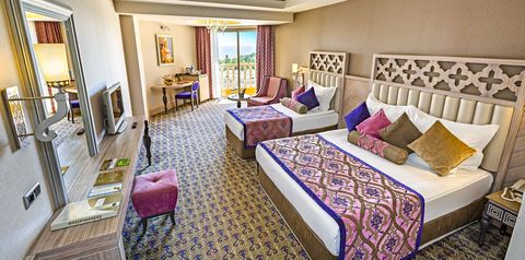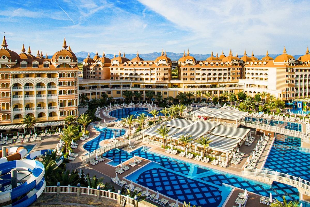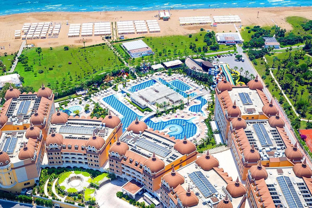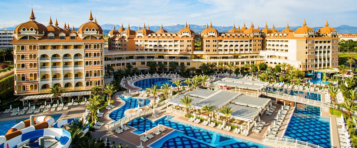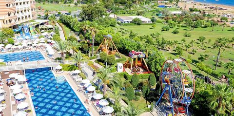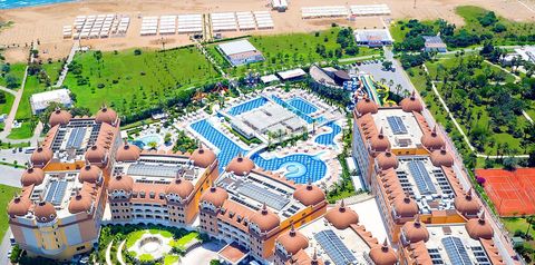 Wyjątkowy i luksusowy, zaprasza na urlop tuż przy cudownej, piaszczystej plaży otwierającej się na błękitne wody Morza Śródziemnego. Położony w spokojnej okolicy, otoczony zielenią, zachwyca ogromnym terenem z imponującymi basenami ze zjeżdżalniami i tarasami, z których można do woli podziwiać cudowne widoki. Odpocznij w komfortowym i przestronnym pokoju, zjedz pyszne śniadanie w hotelowej restauracji i skorzystaj z możliwości spędzenia wolnego czasu na miejscu lub zaplanuj zwiedzanie okolicy – niedaleko stąd do centrum Side z mnóstwem antycznych zabytków. Na koniec dnia polecamy wizytę w profesjonalnym centrum spa, które dzięki specjalnym terapiom pozwoli Ci poznać, co to prawdziwy relaks.