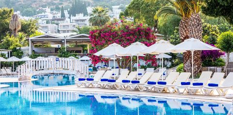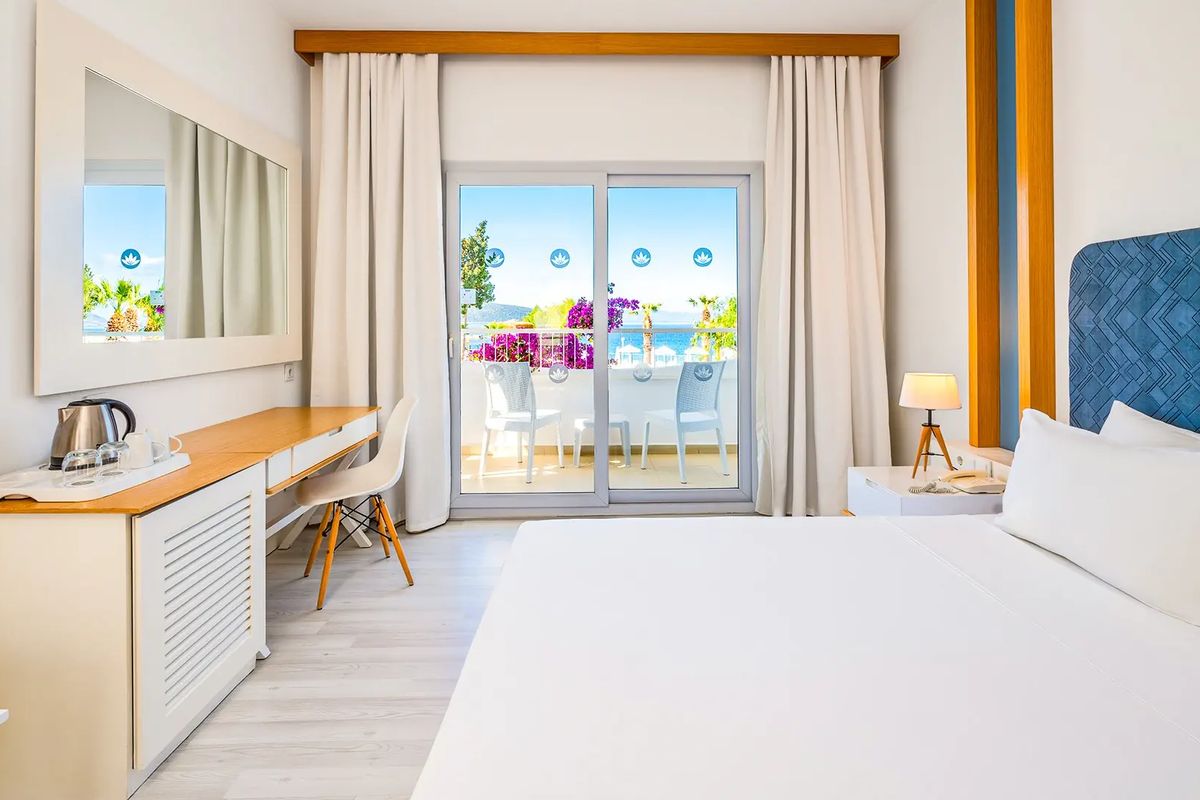 Oddaj się w objęcia pełnego relaksu w stylowym, doskonale położonym hotelu i w pełni skorzystaj z tureckiego słońca! 3 restauracje pełne zróżnicowanych dań i 5 świetnie rozmieszczonych barów zachwycą miłośników pysznej kuchni i świetnych koktajli, zadbany ogród pozwoli odpocząć w cieniu i odnowić swoją więź z naturą, a 3 baseny, w tym ze zjeżdżalniami dostarczą mocy zabawy dla całej rodziny. Bogata oferta sportowo-rekreacyjna z pewnością zadowoli pasjonatów sportu, piękna plaża tuż przy hotelu jest doskonałym miejscem na chwilę odpoczynku, czy spróbowania swoich sił w sportach wodnych, a niewielka odległość od centrum pełnego sklepów, knajpek i wakacyjnych rozrywek Bodrum nie pozwoli nawet na chwilę nudy! Po dniu pełnym wrażeń można zregenerować siły w przestronnych, funkcjonalnie urządzonych pokojach.
