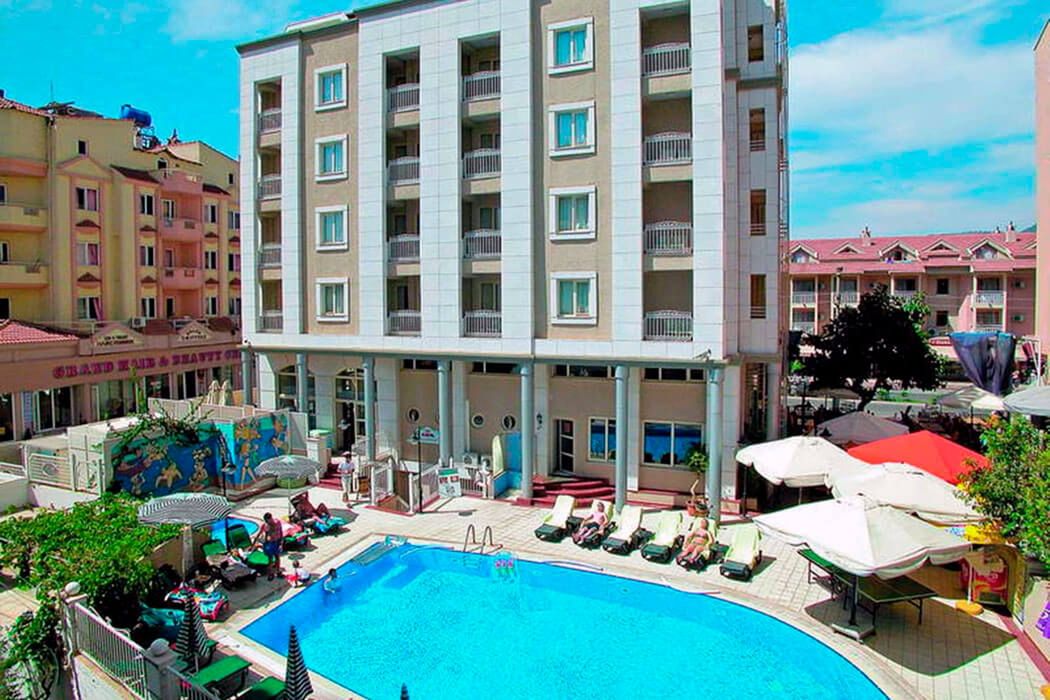 Hotel bardzo glosny w centrum Marmaris ,obsluga w kuchni to dramat zwlaszcza kucharz ktory udaje ze smazy omlety patentowany len.Stolowka bez klimatyzacji klima jest tylko w pokojach .Oferty na stronie nie aktualne wifi tylko w lobby ,zadnych animacji czajnika w pokoju brak herbata dostepna tylko do 22 ,hamam tez nie dziala .Najgorsze to plaza rzkomo bezplatna ale trzeba kupowac drinki bo inaczej wypraszaja z plazy .Nie jedzci do tego hotelu .