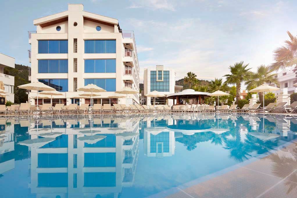 Komfortowy hotel, 113 pokoi zlokalizowanych w budynku głównym, do dyspozycji gości; lobby z recepcją, główna restauracja w formie bufetu, restauracja z przekąskami, bar przy basenie, centrum SPA, basen zewnętrzny, leżaki i parasole przy basenie. Niniejszy opis hotelu obowiązuje w sezonie letnim 2025 (przybliżony czas trwania 27.04.-15.10.2025 r.).