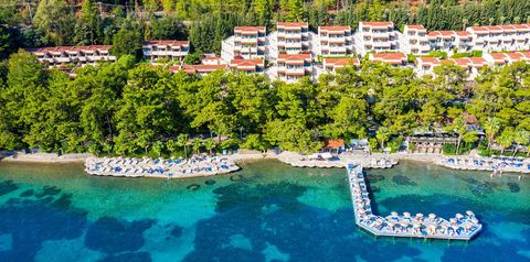 Idealnie położony w pachnącej sosnami piniowymi okolicy, z niesamowitymi widokami na bezkresne Morze Egejskie, doskonale sprawdzi się na wyjazd z przyjaciółmi czy dziećmi. Hotel może pochwalić się dużym zapleczem gastronomicznym – na miejscu jest aż 5 wysokiej klasy restauracji, gdzie serwuje się wyborne dania z różnych zakątków świata oraz 6 barów, w tym przy plaży, w których można skosztować smacznych, orzeźwiających koktajli i napojów. Goście szukający spokojnego wypoczynku mogą pływać w skąpanych w słońcu basenach, opalać się na plaży lub odprężyć się podczas masażu w hotelowym centrum spa, ci bardziej aktywni chętnie grają tu w tenisa czy koszykówkę, a miłośnicy wodnego szaleństwa próbują swoich sił w nurkowaniu. Uwielbiane przez turystów animacje, są ciekawie prowadzone przez sympatycznych i profesjonalnych animatorów – to fantastyczna propozycja na spędzenie czasu z dziećmi, które pokochają zabawy i radośnie wykorzystają wolny czas! Po całym dniu pełnym wrażeń czas na odpoczynek w przestronnych, klimatyzowanych pokojach, które są gwarancją wysokiego poziomu komfortu. Jeśli pragniesz, by błogi relaks łączył się z aktywnością i dobrą zabawą to te miejsce będzie dla Ciebie strzałem w dziesiątkę!
