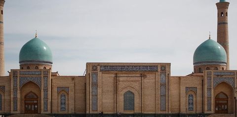 Przylot do Taszkentu, stolicy Uzbekistanu. Transfer do hotelu. Czas na odpoczynek. Po śniadaniu przejazd przez plac Niepodległości, Timura i Teatru-Opery. Zwiedzanie serca miasta – zespołu Khast-Imam z medresą Barak Khan, meczetem Tellya Sheikh oraz mauzoleum Abu Kaffal Chachi z XVI w. Tutejsza biblioteka szczyci się najstarszą na świecie księgą Koranu z VII w., która należała do Osmana, trzeciego kalifa islamu. Ogromy tom zawierający 353 strony został zdobyty przez Timura w trakcie podboju Mezopotamii. Przejazd pod medresę Kukeldash, najsłynniejszą z 17 szkół koranicznych stolicy. Spacer po Chorsu, największym bazarze nie tylko Taszkentu, ale i Azji Środkowej. Wizyta w Muzeum Sztuk Dekoracyjnych, znajdującym się w byłej rezydencji carskiego dyplomaty, z m.in. piękną kolekcją rzemiosła i haftowanych makat „suzanne”. Postój przy kościele katolickim, gdzie stoi obelisk poświęcony żołnierzom armii gen. Andersa. Kolacja.