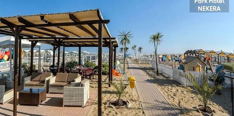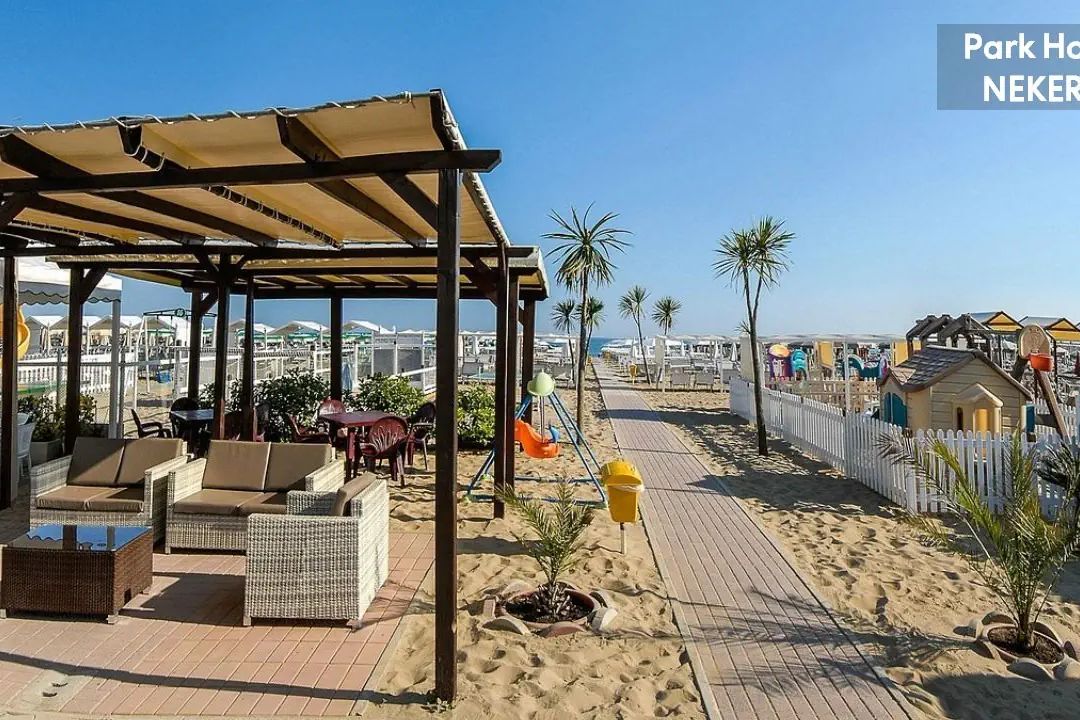 Prywatna piaszczysta plaża przy hotelu (przejście przez ulicę). Leżaki i parasole słoneczne za dodatkowa opłatą (ok. 12 € / dwa leżaki i parasol). Dodatkowo na plaży znajduje się boisko do siatkówki plażowej, mini siłownia, plac zabaw.