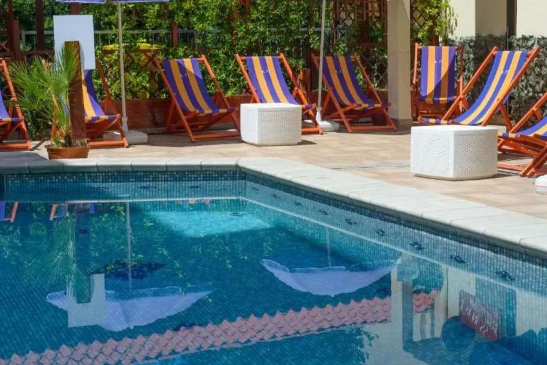 Zlokalizowany jest w nadmorskiej miejscowości Rimini, w dzielnicy Rivazzurra, ok. 150 m od piaszczystej plaży; ok. 5 km od centrum Rimini, ok. 500 m od parku rozrywki Fiabilandia, ok. 3 km od portu turystycznego. W pobliżu znajdują się lokalne tawerny, sklepy i restauracje (ok. 30–200 m) oraz przystanek autobusowy (ok. 100 m). Port lotniczy w Rimini oddalony o ok. 2 km.